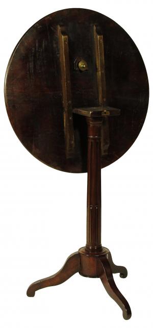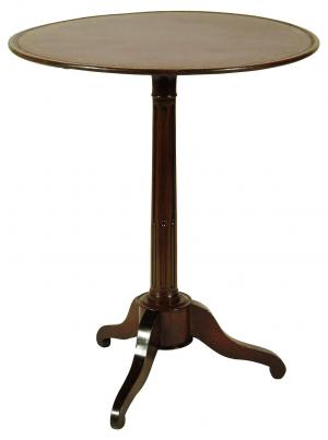 An early 19th-C. English Regency tip-top occasional table with a gold tooled red leather inset top and rich original patina. Many tables of the 18th and 19th centuries were constructed with a tip-top mechanism so that they could be quickly put aside to make room for an evening of entertainment. Minor surface wear. 25.0" Dia. x 30.0" High.